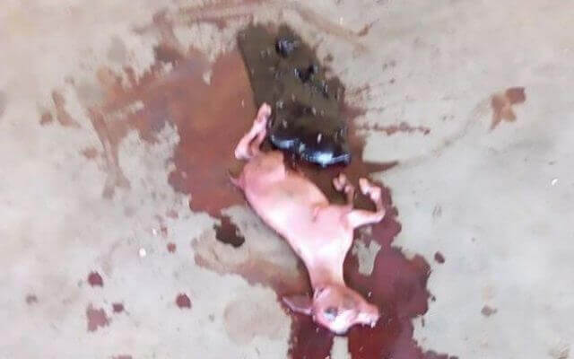Imagens capturadas mostram o animal rodeado por uma poça de sangue e, logo ao lado, algo como uma placenta, ambos no jogados no chão de concreto. O caso aconteceu na cidade de Port Harcourt, ao sudeste da Nigéria, e foi divulgado primeiro nas redes sociais e depois pela mídia local.