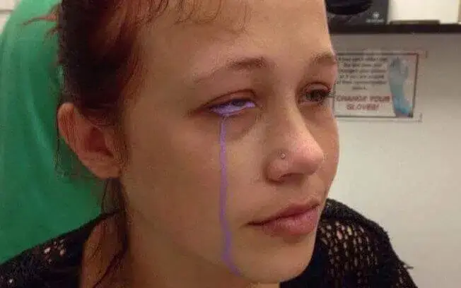 Tudo parecia correr bem, até a tinta roxa da tatuagem ocular começar a “escapar” de seus olhos durante o procedimento. Neste momento, Gallinger percebeu que algo estava errado. A modelo procurou um centro médico e, depois de ser atendida, foi informada pela equipe do hospital que nunca poderá recuperar totalmente a sua visão. A notícia abalou sua saúde mental.
