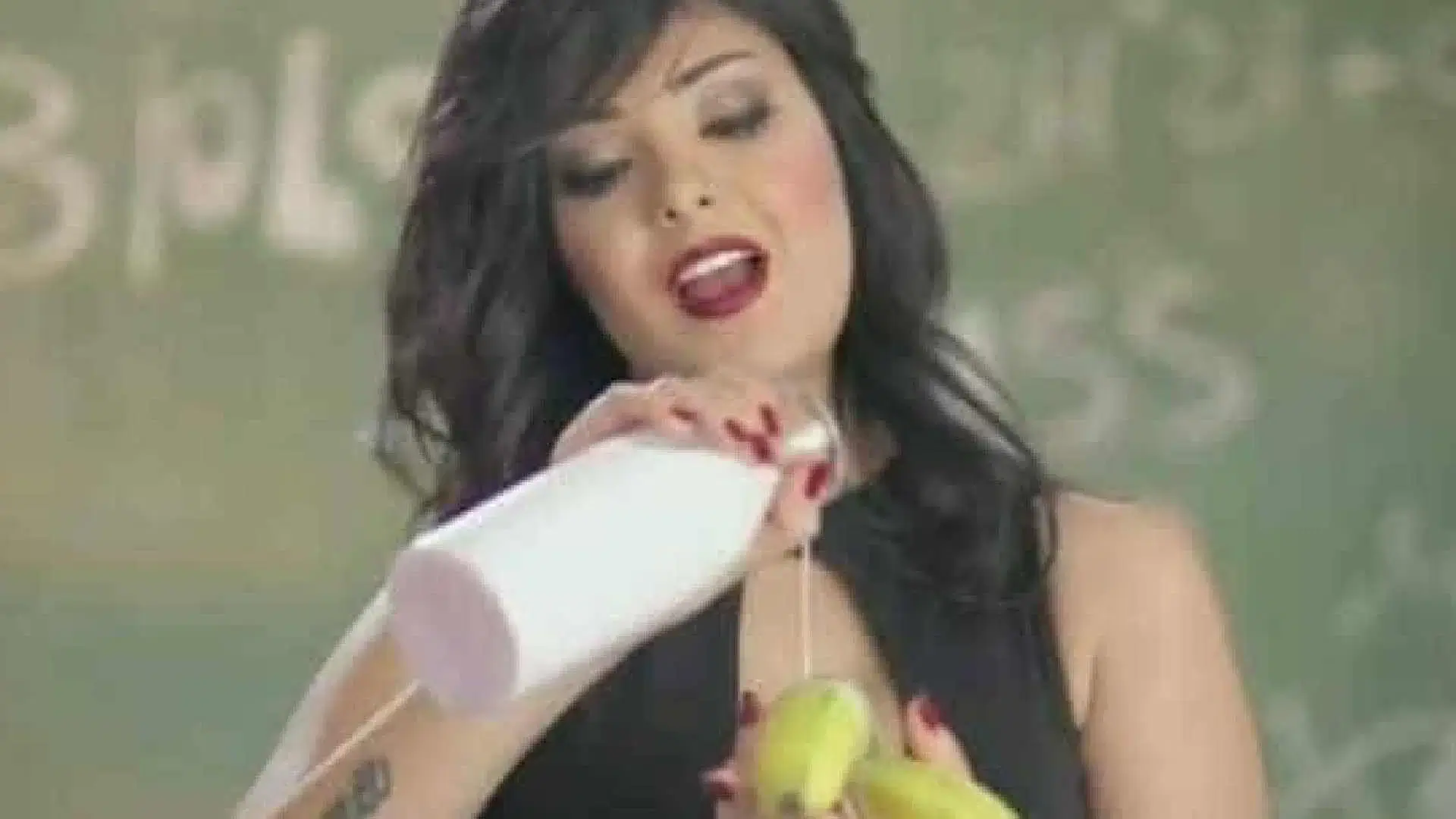 Shaimaa Ahmed, cujo nome artístico é Shyma, aparece em lingerie numa sala de aula repleta de homens. Além disso, e enquanto come a dita banana, atrás de si tem um quadro onde pode ler-se ‘Class #69’.