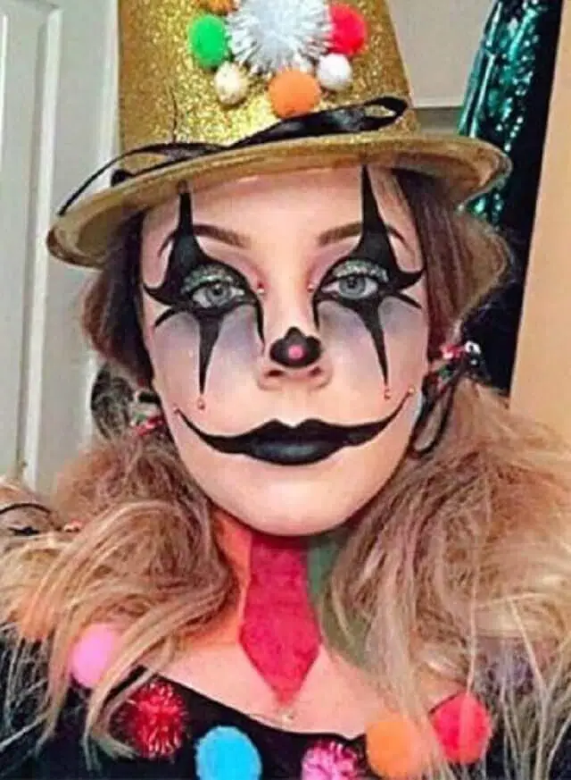 Uma jovem norte-americana, de 25 anos, quase ficou cega depois de se fantasiar de palhaço para festejar o Dia das Bruxas com os amigos.