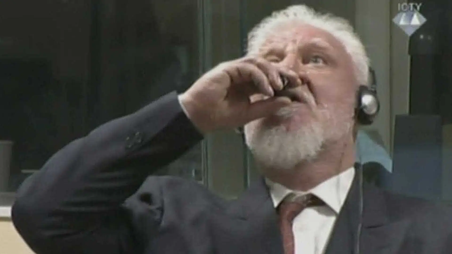 Segundos depois de os juízes confirmarem a sua pena de 20 anos de prisão por envolvimento numa campanha contra os muçulmanos durante a guerra da Bósnia, Slobodan Praljak, 72 anos, gritou “não sou um criminoso de guerra”, antes de tirar uma pequena garrafa do bolso e beber o seu conteúdo.