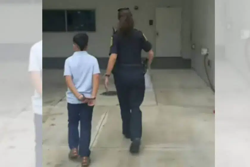 Em um vídeo publicado na internet, é possível ver o momento em que o menino é encaminhado por um policial até a viatura com as mãos para trás. “Está tudo bem, amor”, diz a mãe do jovem, Mercy Alvarez, na gravação.