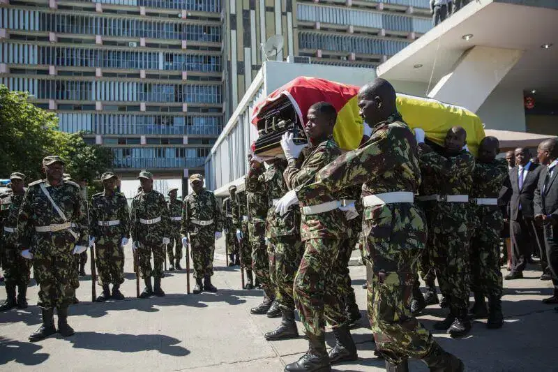 O corpo do líder histórico da Renamo foi velado por quatro militares das Forças Armadas de Defesa de Moçambique.