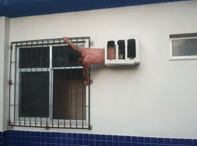 Um homem brasileiro que tentava escapar à detenção numa esquadra em Óbidos, no Pará, ficou preso no buraco do ar-condicionado no momento da fuga.