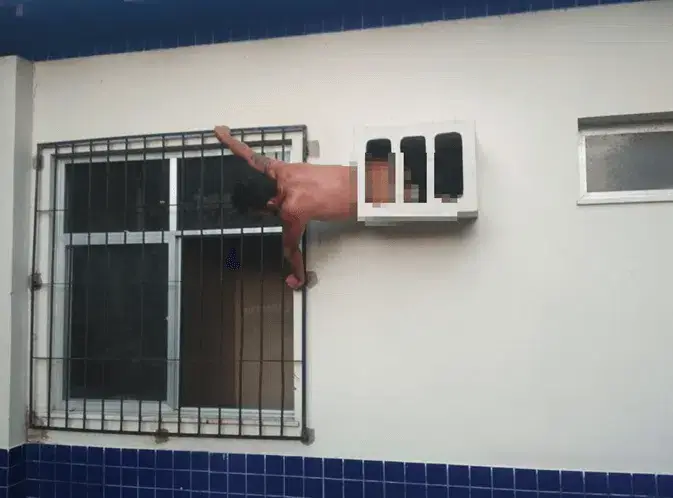 O brasileiro chegou mesmo a retirar o aparelho da parede mas, ao tentar fazer-se passar pelo buraco, ficou “com metade do corpo do lado de fora e outra do lado de dentro do prédio”, conta a publicação.