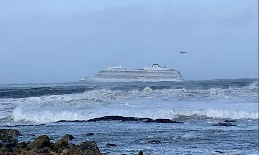 O navio, chamado Viking Sky, lançou um alerta na tarde de sábado (23), quando o mar agitado e problemas de motor fizeram com que ele começasse a flutuar em direção à costa rochosa.