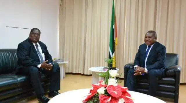 O entendimento entre o Presidente da República, Filipe Nyusi, e o Presidente da Renamo, Ossofu Momade, aconteceu, na tarde de domingo, num encontro realizado entre ambos, na cidade Chimoio, província de Manica. A ideia dos dois dirigentes é garantir que os moçambicanos possam votar num ambiente de paz.