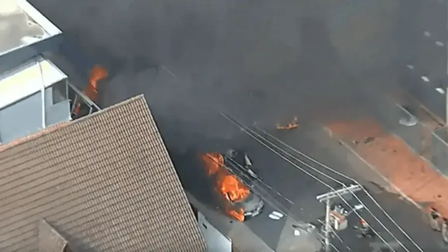Uma pessoa foi transportada para o hospital com queimaduras. O acidente aconteceu num bairro residencial, próximo do Aeroporto Carlos Prates.