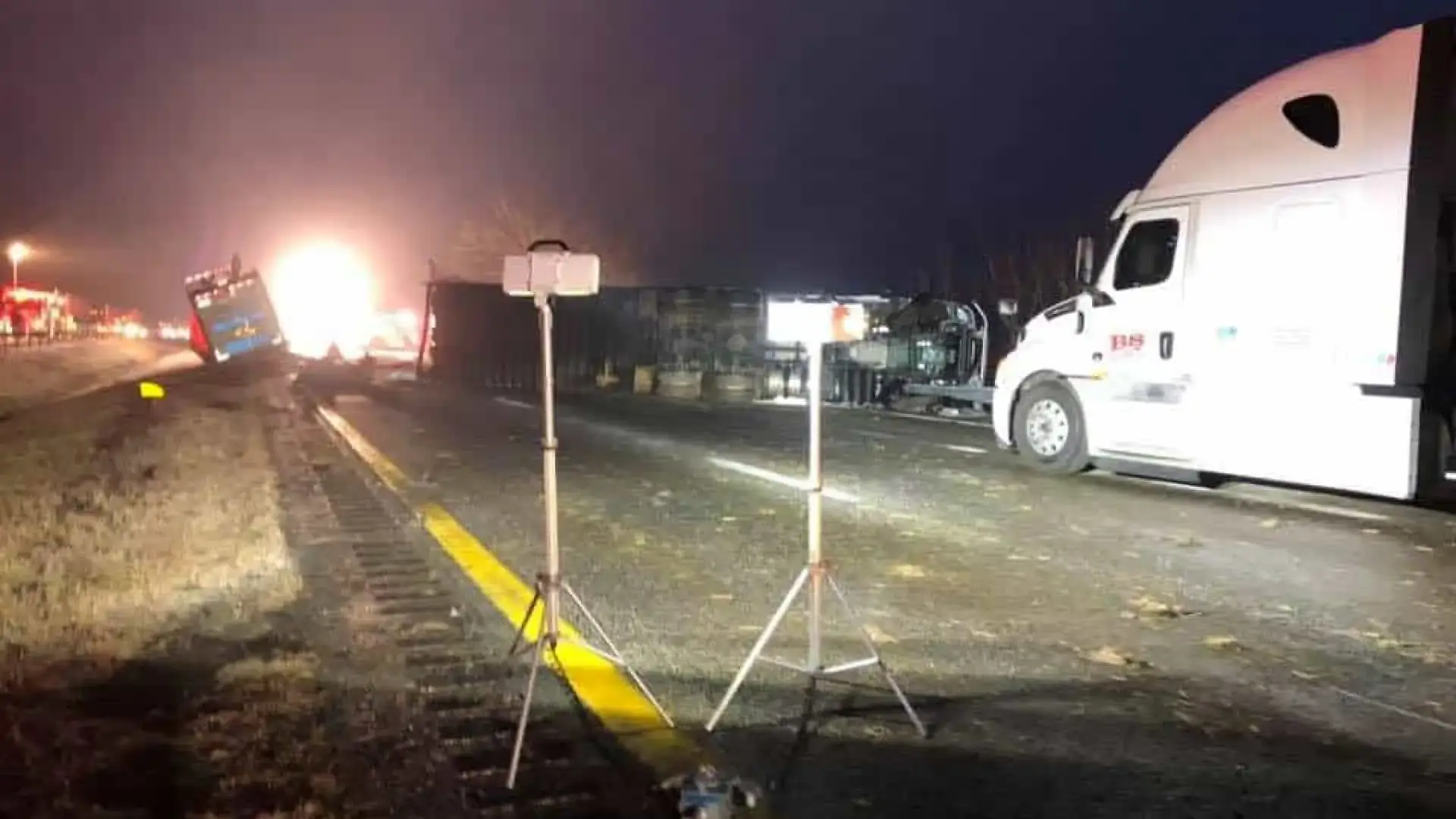 Esta colisão provocou outros sete acidentes de menor dimensão. O nevoeiro e as condições escorregadias do asfalto podem ter estado na origem do acidente inicial.