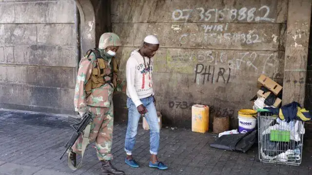 Os militares da Força de Defesa Nacional da África do Sul (SANDF, na sigla em inglês) e os efectivos da polícia sul-africana (SAPS, na sigla em inglês) foram destacados no âmbito do estado de desastre nacional (em vigor desde 15 de Março) e do confinamento nacional de 21 dias agora declarado.