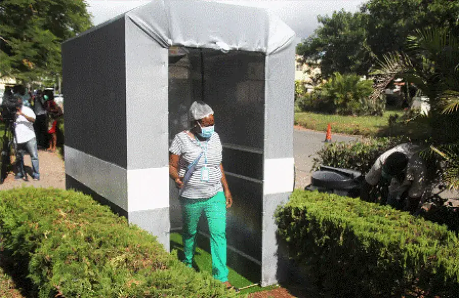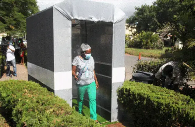 O túnel de desinfecção em massa, a ser entregue hoje, por Júlio Parruque, faz parte de um lote de 12, adquiridos pelo Conselho Municipal da Matola, para fazer face aos desafios impostos pela pandemia do novo coronavírus.
