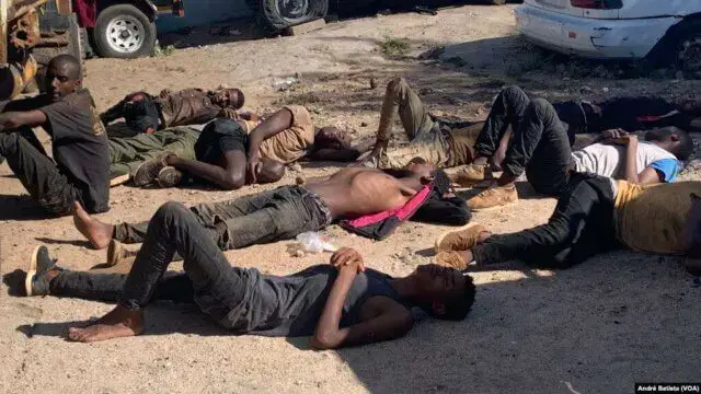 Os migrantes descreveram também os horrores de ficar confinados num espaço que mal podia acomodar 20 pessoas, mas tinha 78 pessoas umas sobre as outras.
