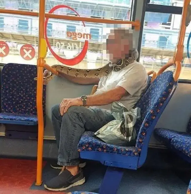 O homem usava o réptil ao pescoço como um cachecol, que cobria a cara, enquanto fazia a viagem de autocarro.