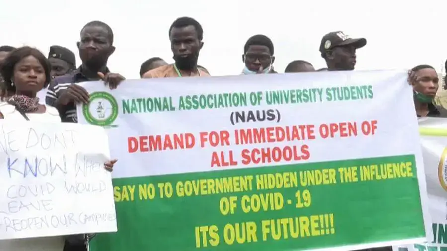 Os estudantes da Nigéria saíram às ruas de Abuja, a capital, para exigir a reabertura de suas escolas, já fechadas como parte dos esforços para conter a disseminação do coronavírus.