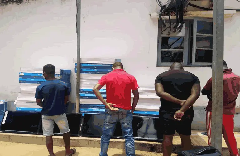 Quatro (4) indivíduos, de idades compreendidas entre os 33 e 47 anos de idade vêem o sol aos quadradinhos, desde sábado (30), nas celas da 5.ª Esquadra da Polícia da República de Moçambique (PRM), no bairro da Machava, município da Matola, província de Maputo, indiciados do furto de 41 televisores plasmas de um armazém, com ajuda de um dos seguranças do local.