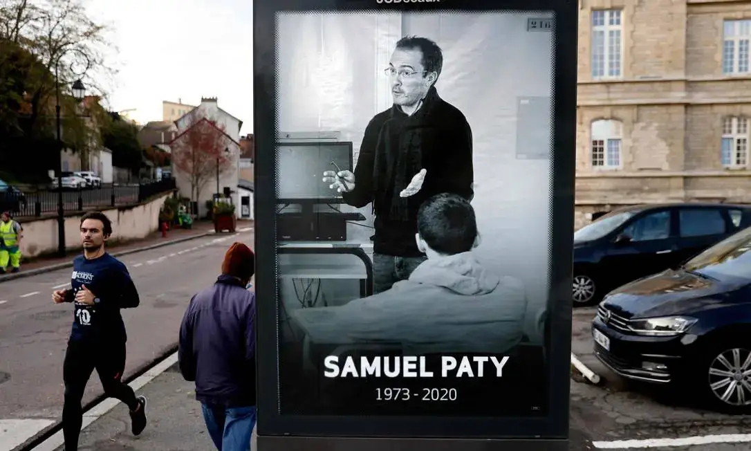 Dez dias antes de sua decapitação, em Outubro de 2020, pelas mãos de um refugiado checheno de 18 anos, o professor de história e geografia deu uma aula sobre liberdade de expressão, na qual exibiu charges do semanário satírico Charlie Hebdo com o profeta Maomé.