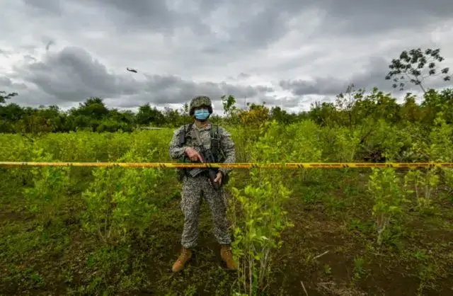 Em 2020, “os números do cultivo de coca e da produção de cocaína atingiram um recorde de 245.000 hectares e 1.010 toneladas métricas, respectivamente”, informou o Escritório de Política Nacional de Controle de Drogas da Casa Branca (ONDCP, sigla em inglês). Isso representa um aumento em relação a 2019, quando foram registrados 212.000 hectares de plantação de coca e 936 toneladas métricas produzidas de cocaína, e um pico na última década.