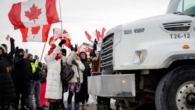 A chegada da coluna de camiões a Ottawa culminará num protesto em frente ao parlamento, contra a vacinação obrigatória decretada aos camionistas que atravessam a fronteira em trabalho.