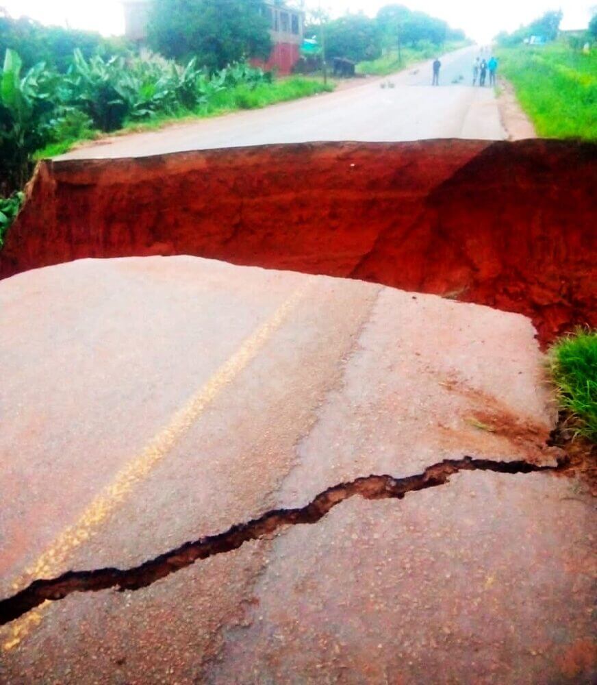 Testemunhas informaram que o problema resulta da ruptura de um aqueduto, que não suportou ao corrente de água pluvial, tendo sido arrastado, abrindo uma enorme e profunda cratera no meio da estrada.