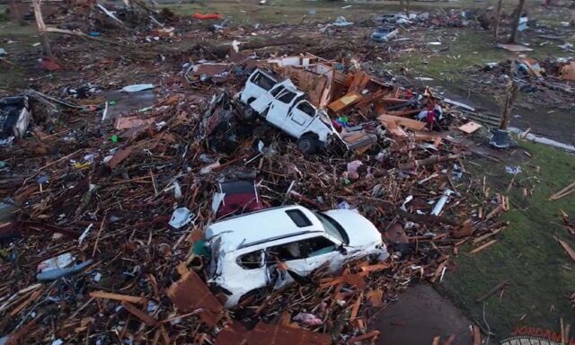 A tempestade arrancou telhados de casas, praticamente destruindo bairros das cidades de Silver City e Rolling Fork. Milhares estão sem energia elétrica. Imagens postadas nas redes sociais mostram o cenário de devastação.