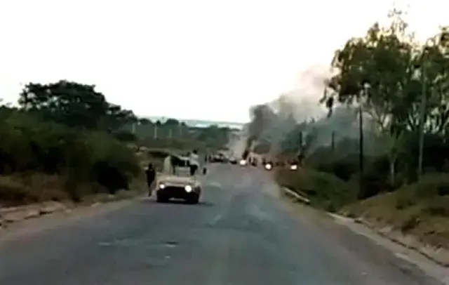 As barricadas foram colocadas pela população que reside nas proximidades da EN2, em repúdio às poeiras que são levantadas por viaturas que transitam pela rodovia, que se encontra em avançado estado de degradação, desde o ano passado.