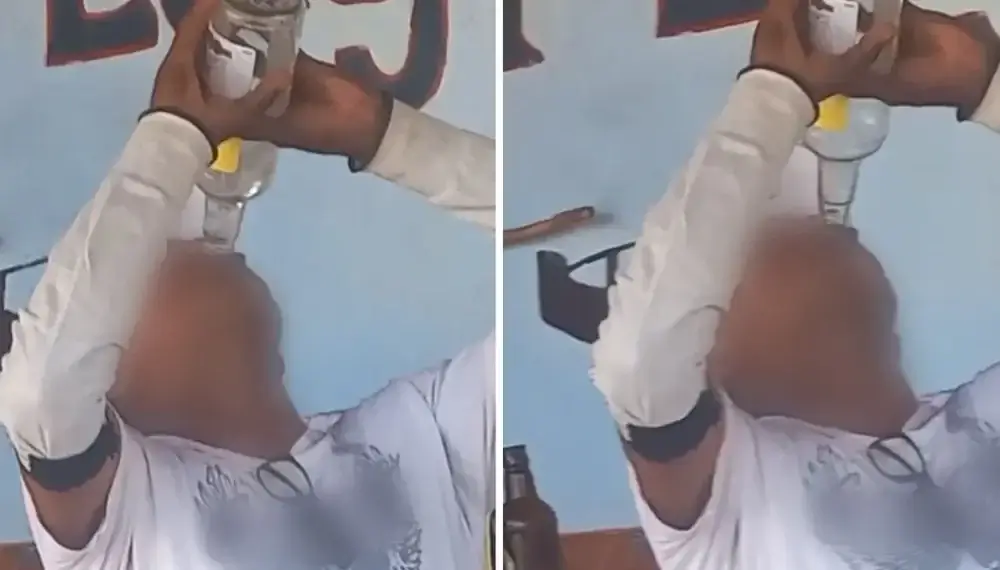 O vídeo, que foi divulgado nas redes sociais e partilhado pela imprensa brasileira, mostra o homem a beber um litro de cachaça, enquanto outras pessoas dizem: “Bebeu, ganhou, pode trazer a caixinha de cerveja”.