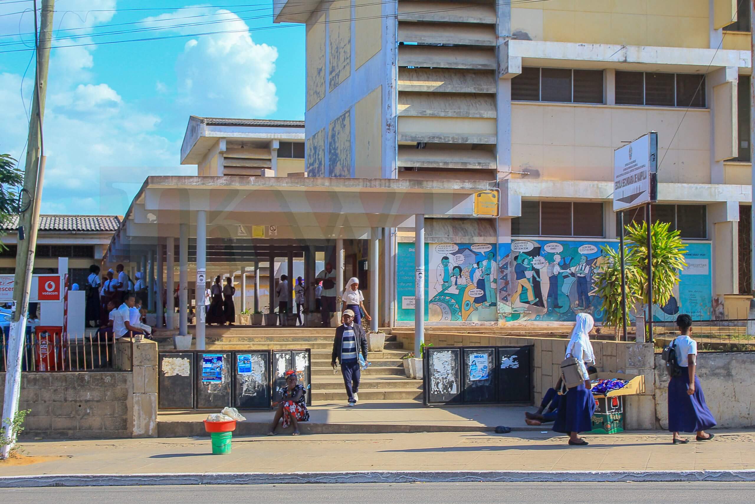 Alunos da Escola Secundária de Nampula, a maior da província, enfrentam uma situação precária, com cerca de 600 estudantes obrigados a assistir às aulas sentados no chão devido à falta de carteiras.