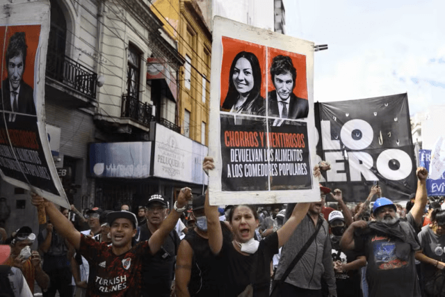 O dia de protesto, intitulado “A fome é o limite”, foi convocado por várias organizações de esquerda radical e movimentos sociais que têm realizado diversas ações de rua desde que Milei assumiu o cargo em 10 de dezembro.