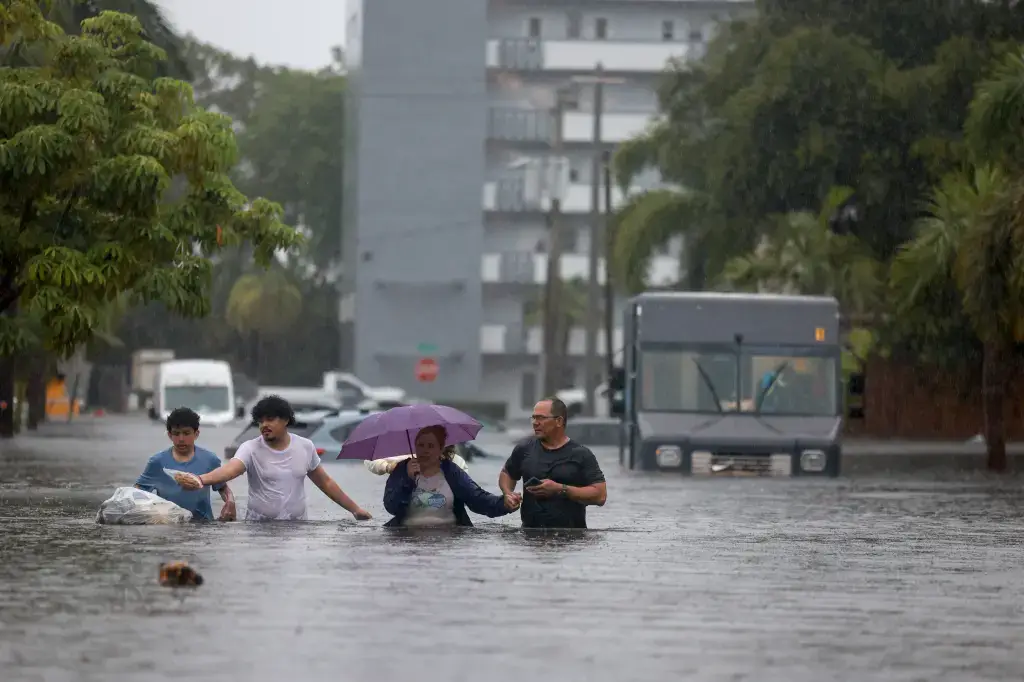 O Serviço Nacional de Clima dos Estados Unidos mantém um alerta de enchentes em vigor para todo o sul da Flórida até a noite de sexta-feira (14).