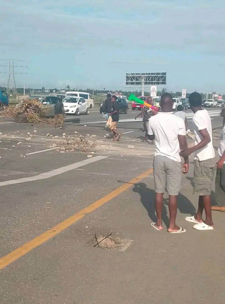 No local, a presença policial é notável, com um reforço significativo que inclui um blindado da Unidade de Intervenção Rápida. Um autocarro articulado foi utilizado pelos manifestantes para obstruir completamente o trânsito no sentido Maputo-Matola. Outros protestantes queimam pneus e colocam pedras na via, enquanto apitos e vuvuzelas ecoam, intensificando a atmosfera de contestação.
